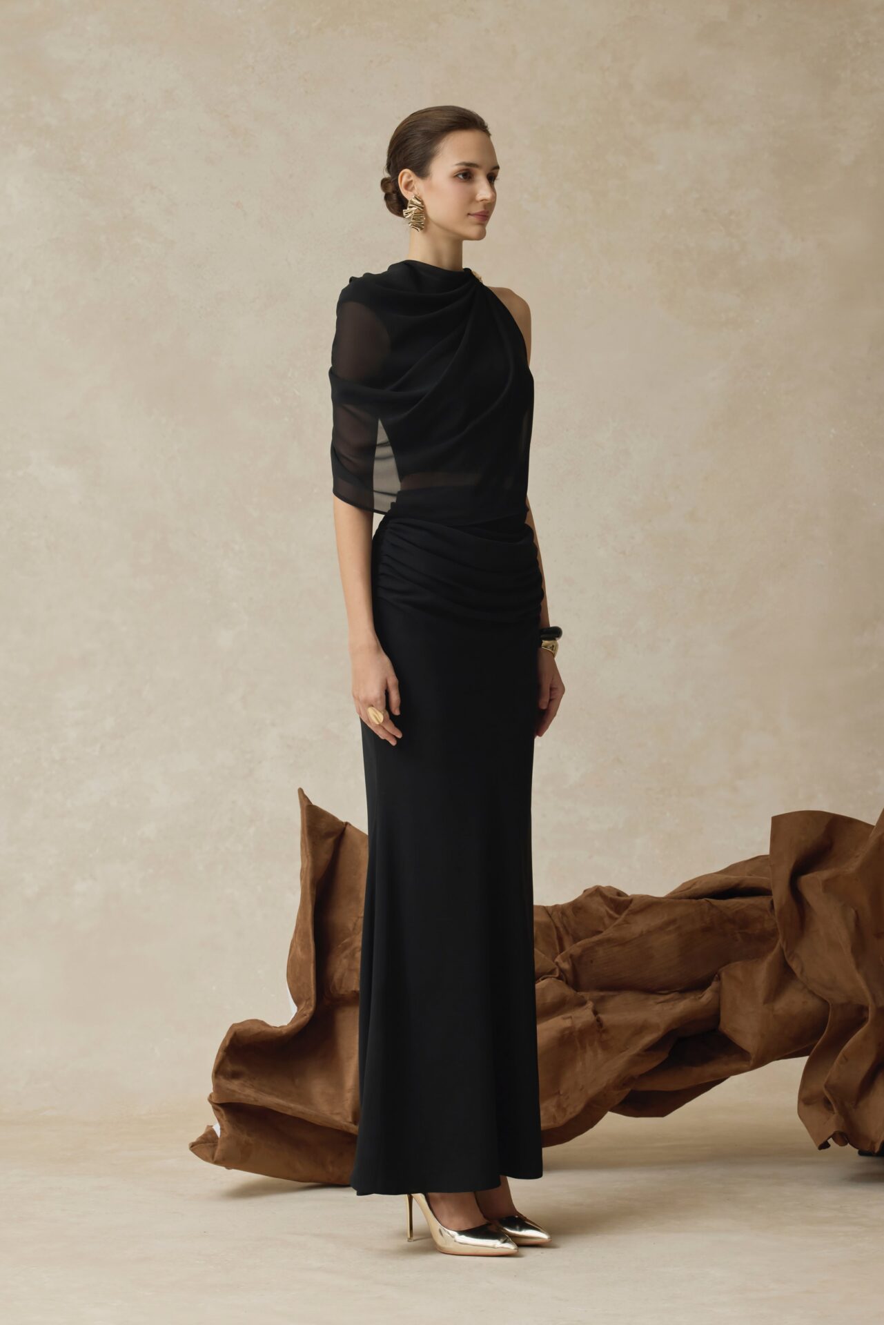Averi One-Shoulder High Neck Draped Top