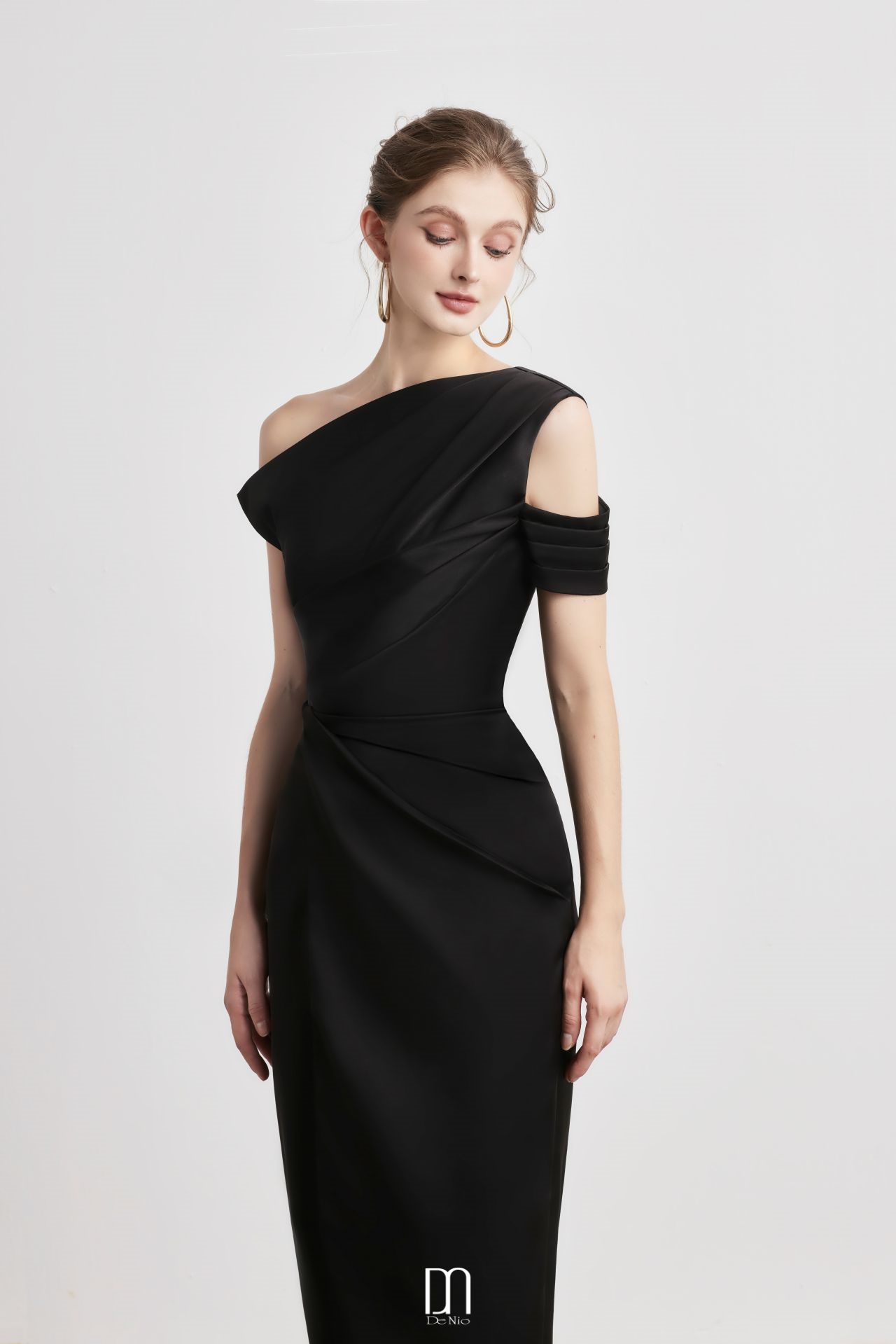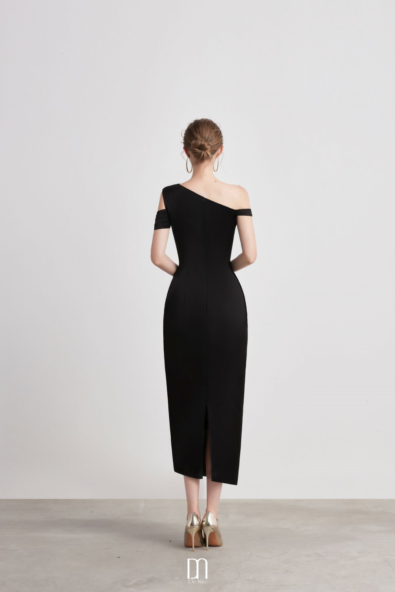 Bauhinia Pleated Shoulder Pencil Dress Black quantity