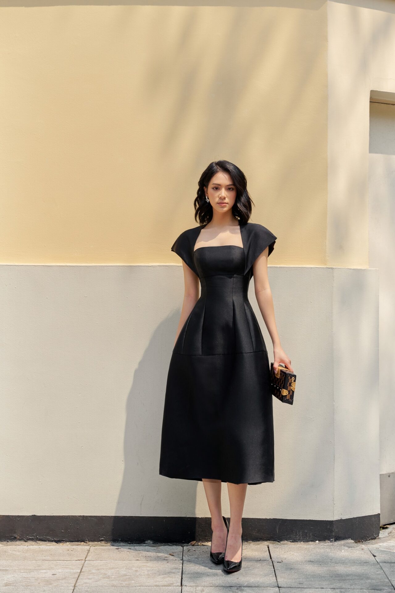 Bernarda Taffeta Dress with Cape Sleeves