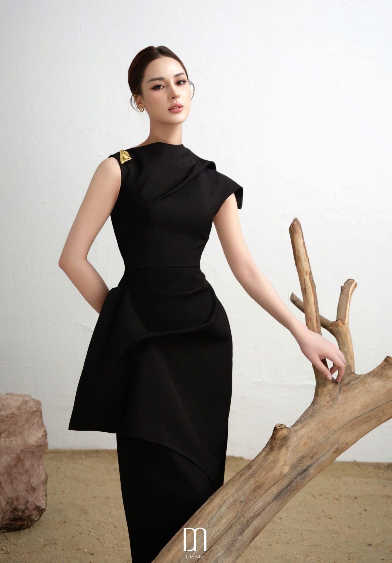 Calla Asymmetric Midi Dress Black quantity