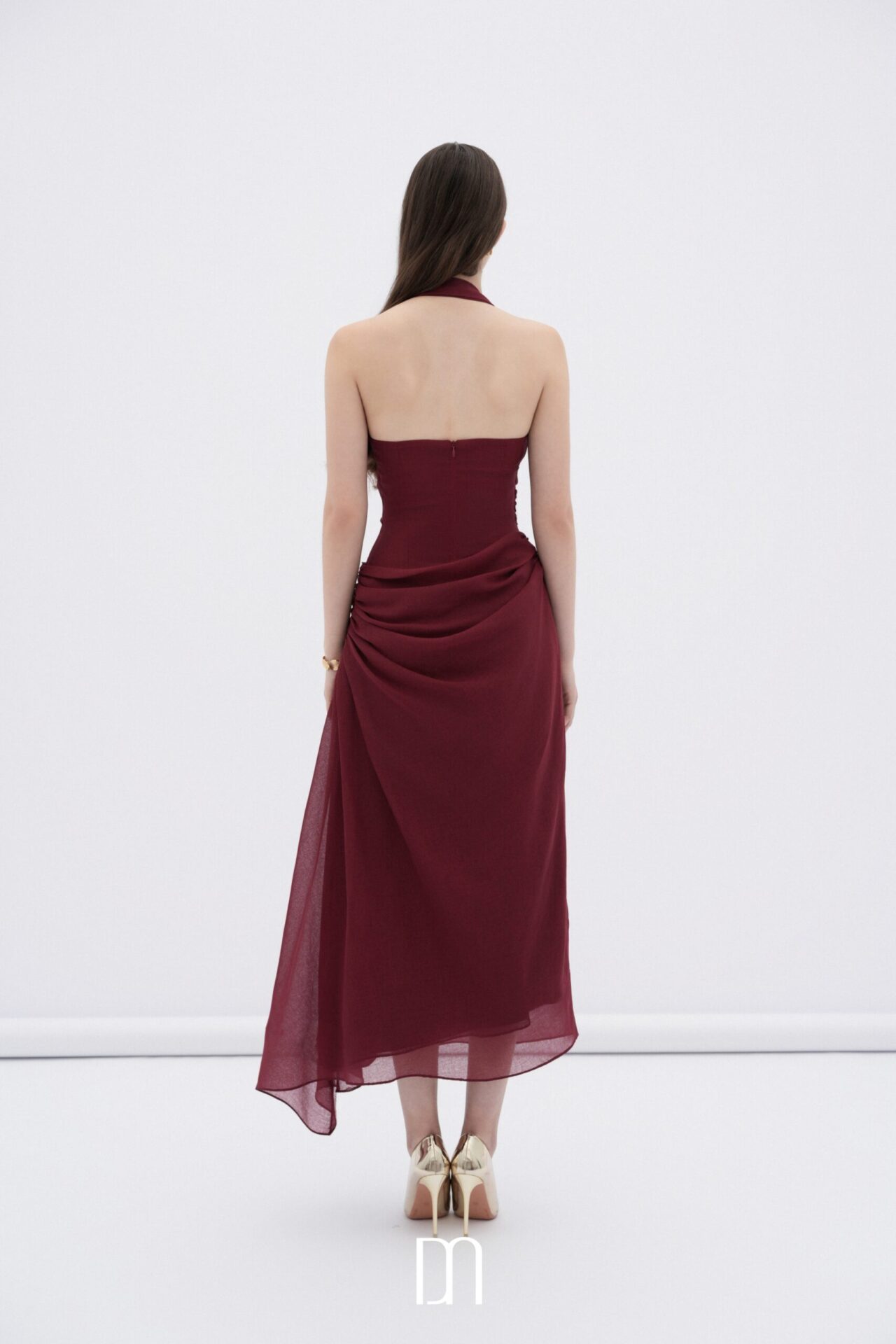 Elowen asymmetric hem midi dress with draped waist số lượng