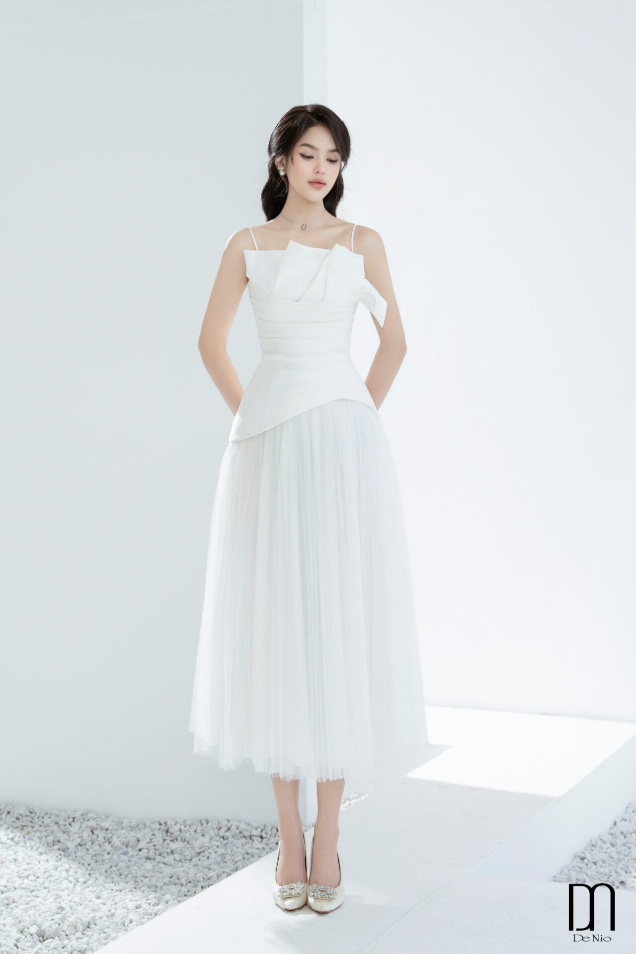 Elowen asymmetric hem midi dress with draped waist