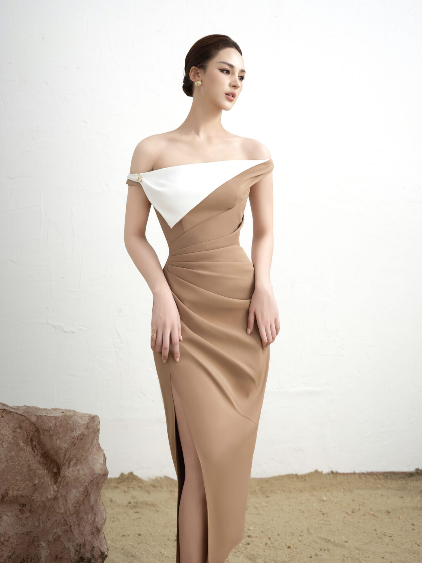 Layla Pleated Midi Dress With Mixed Fabric số lượng