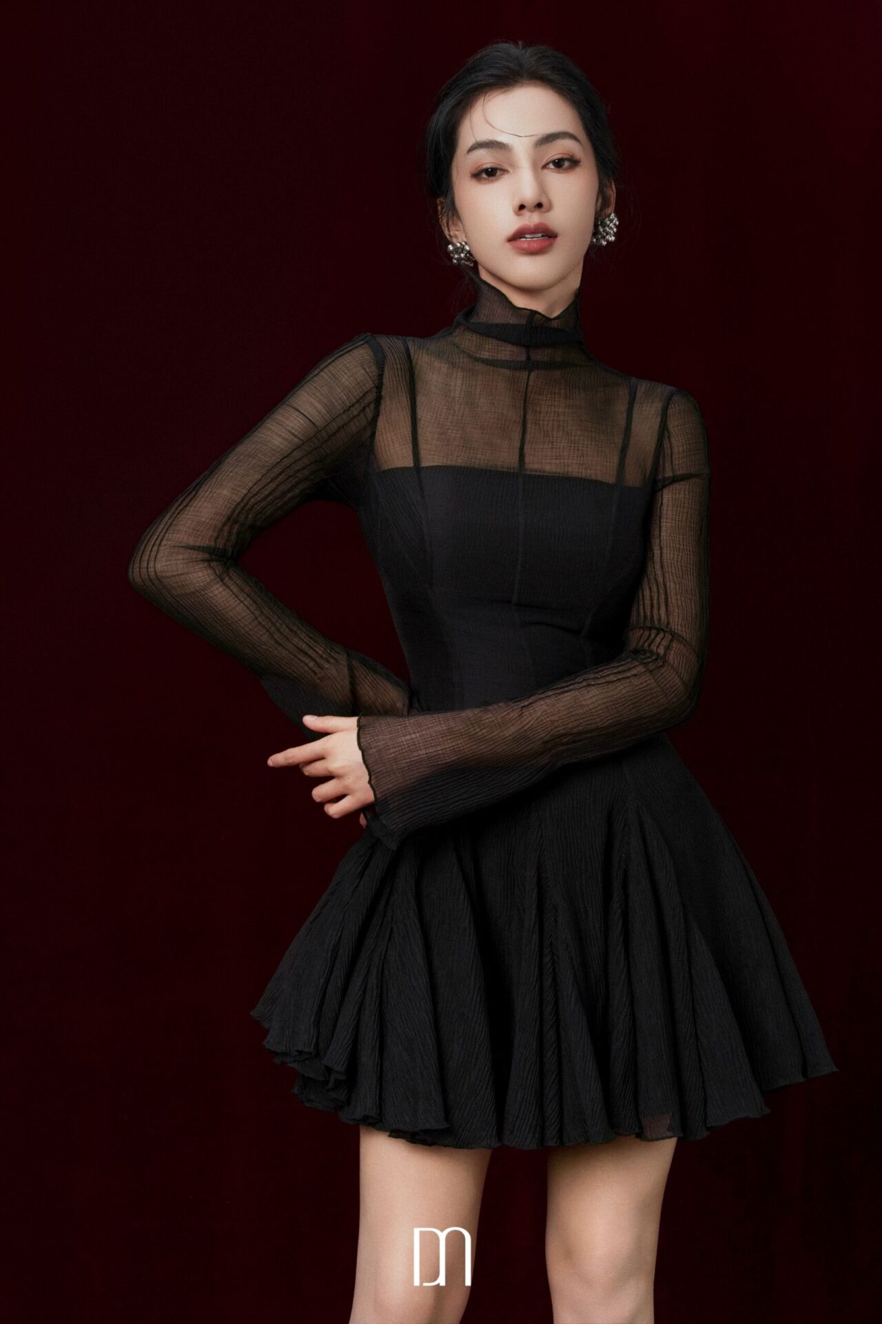 Quinn pleated-edges turtleneck chiffon mini dress số lượng