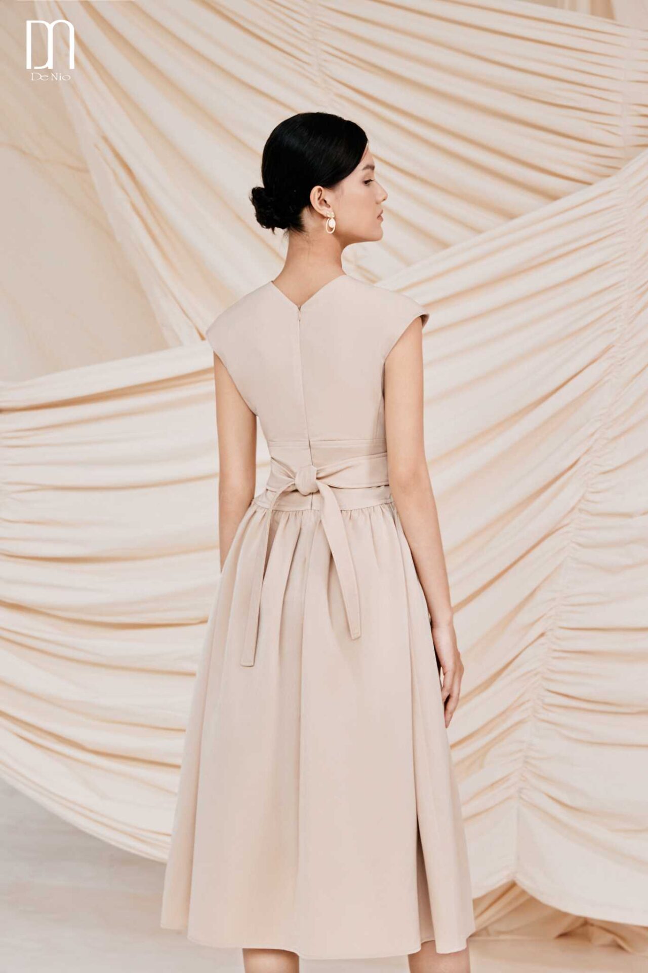 Odessa Midi Dress With Twisted Bow Sleeves