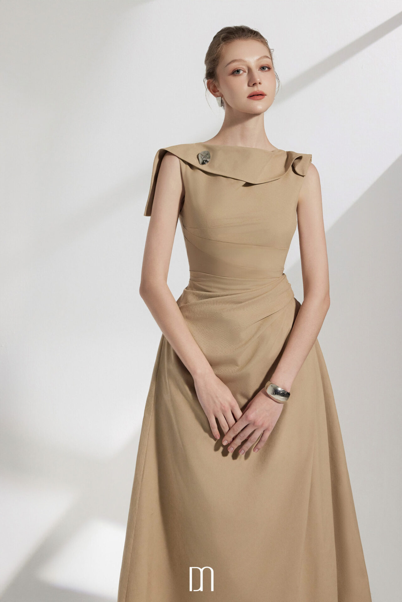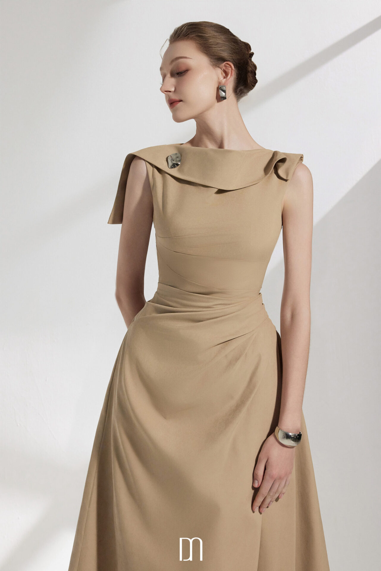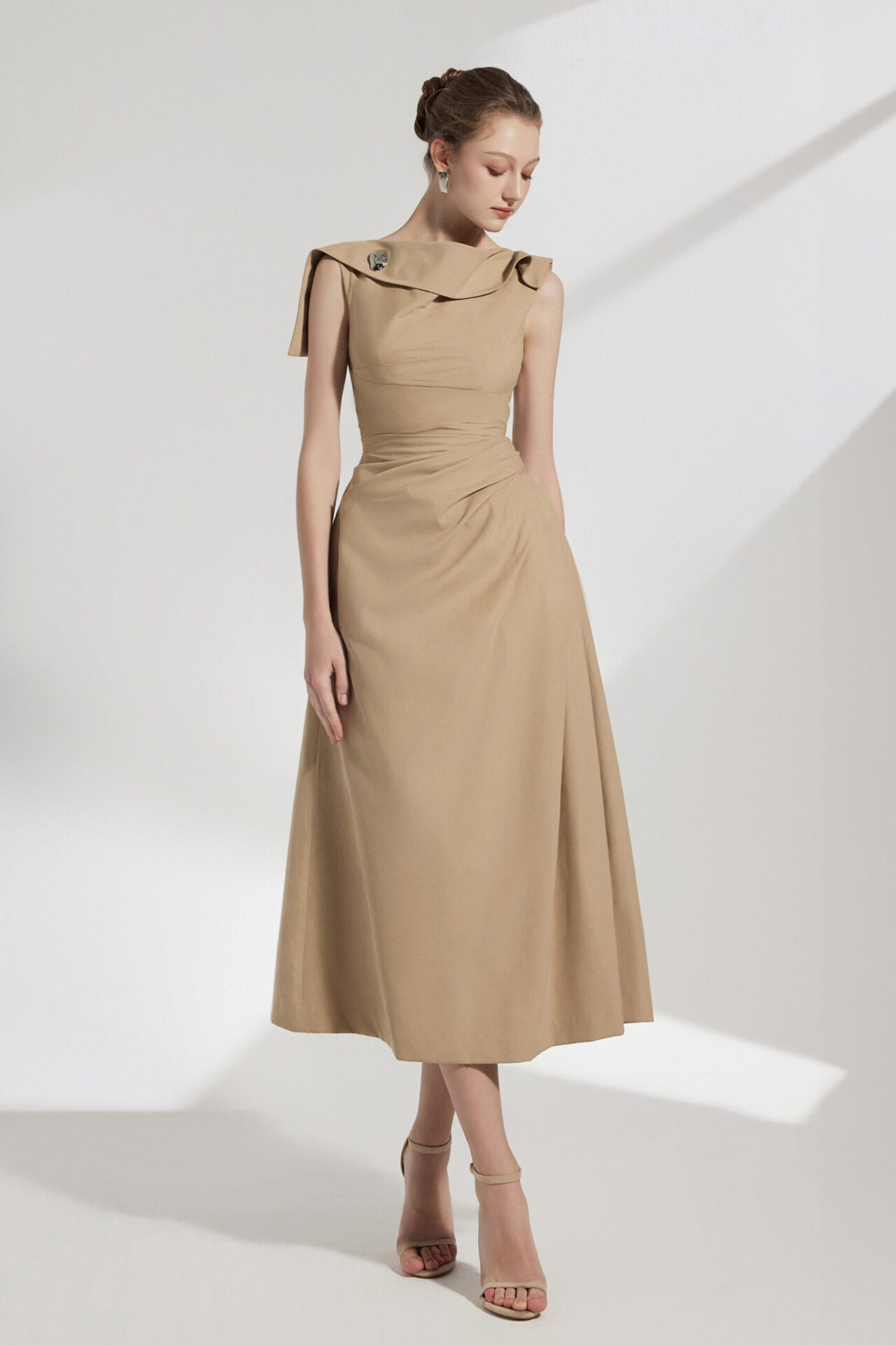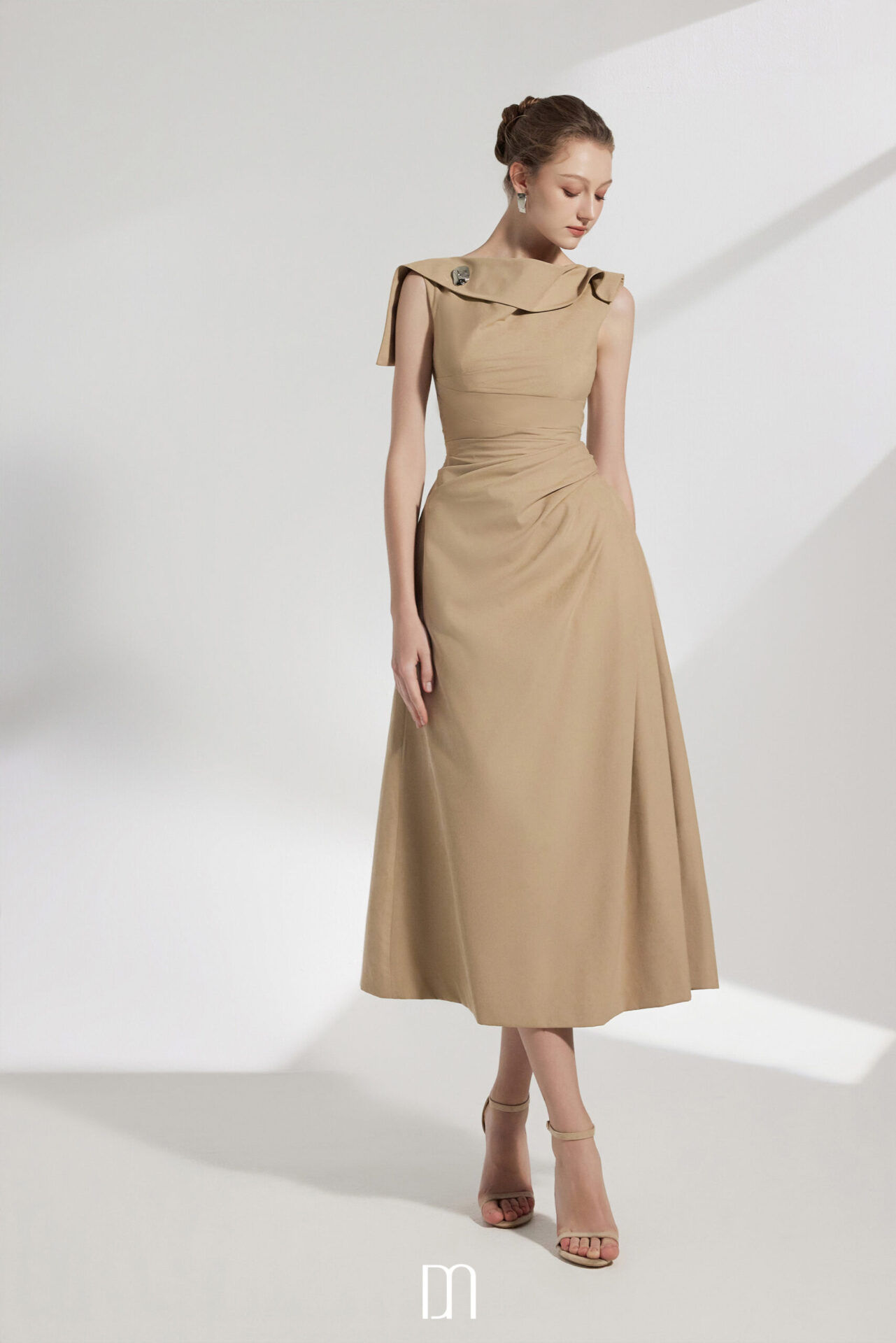Solene Flipped Collar Neckline Midi Dress số lượng