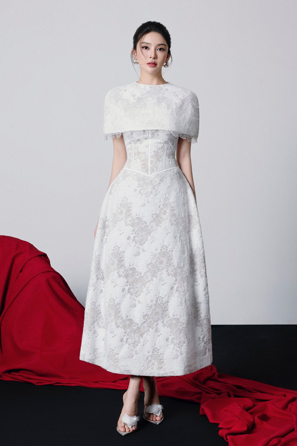 Delphi Off Shoulder Mesh Lace Maxi Dress